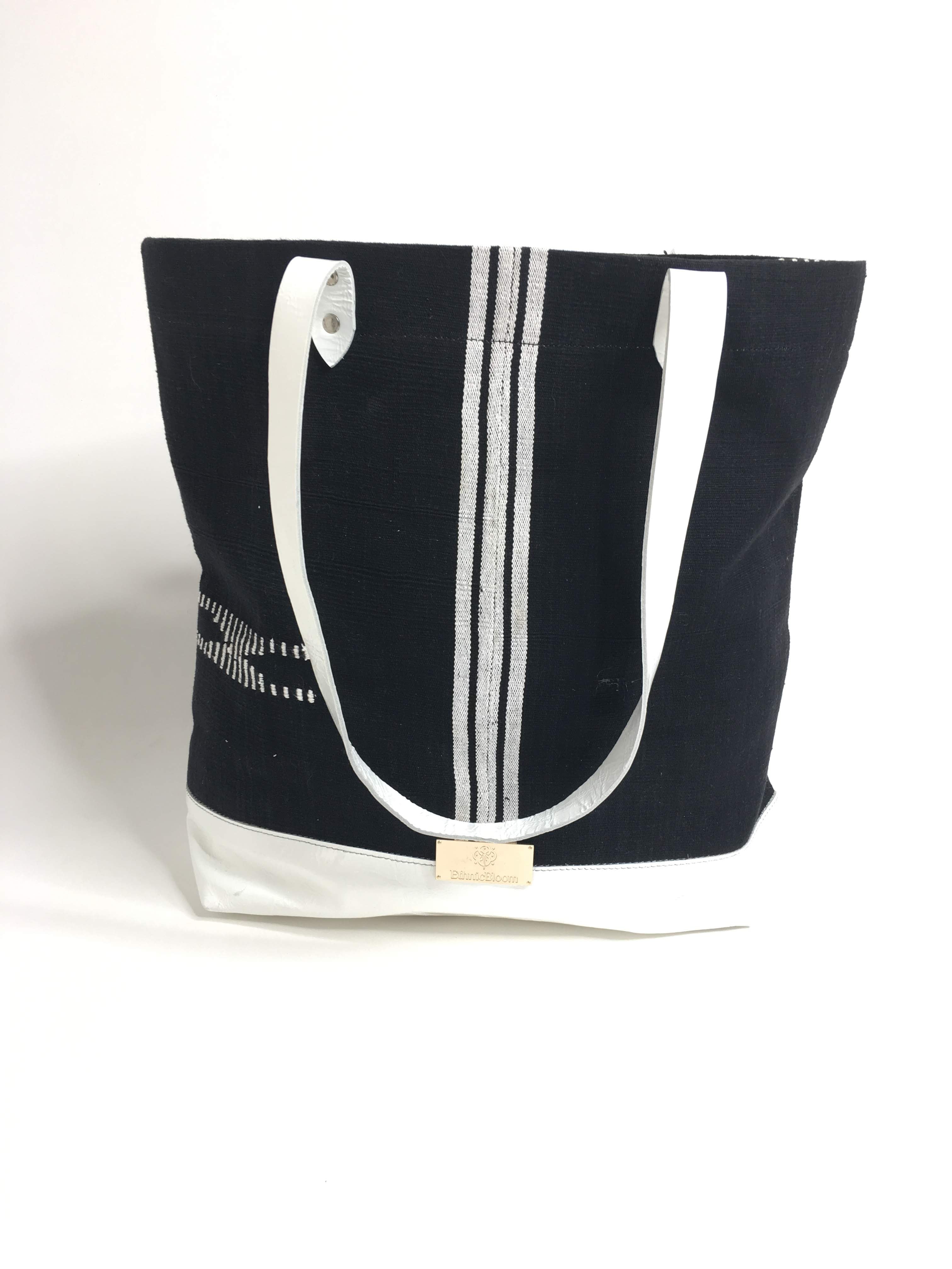 Ce sac caba mi-cuir mi-faso danfani est réalisé à la main avec le plus grand soin par nos meilleurs artisans locaux pour un fini hors pair.