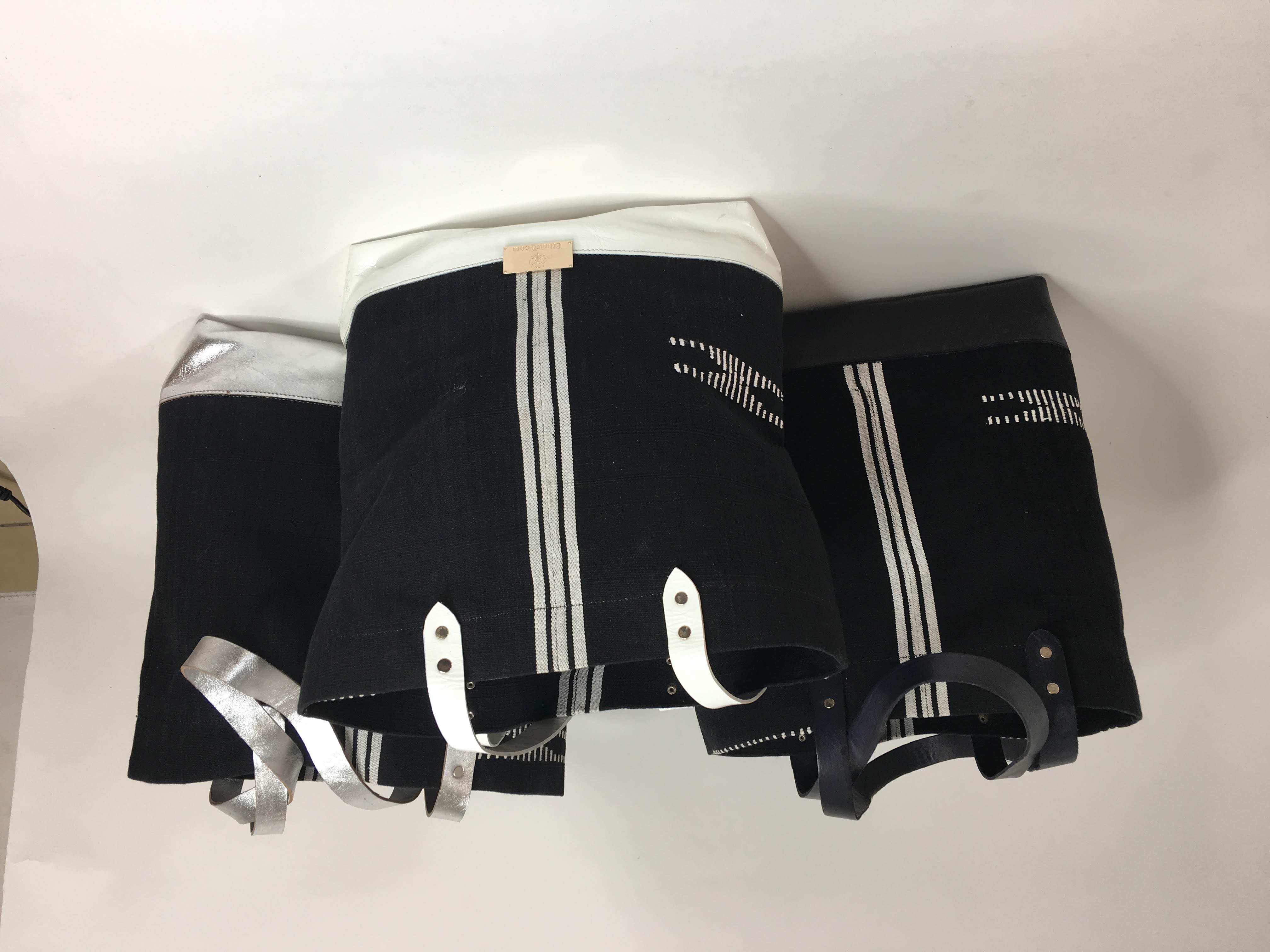 Materiaux: cuir véritable, pagne tissé Faso Danfani, doublure en nylon.