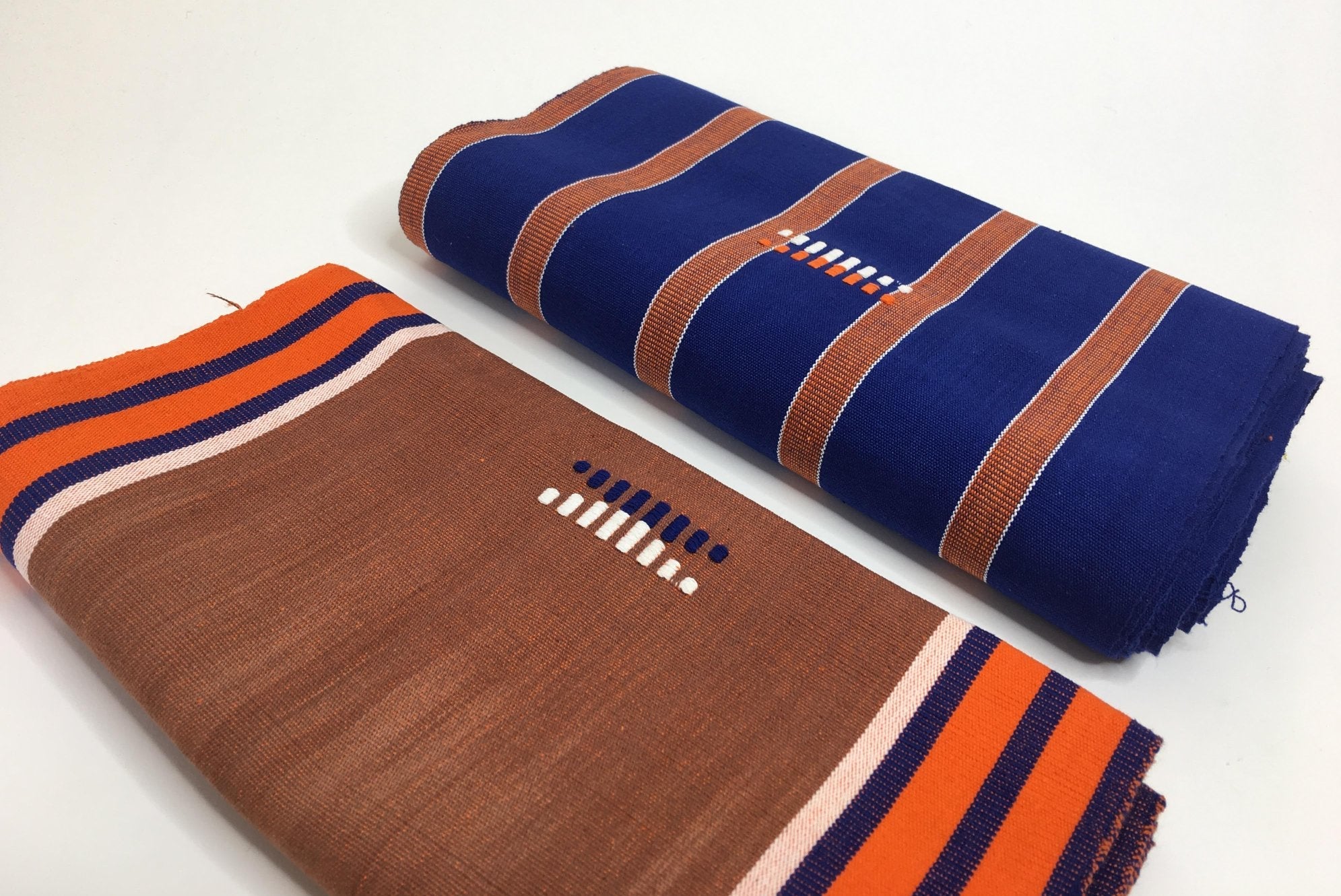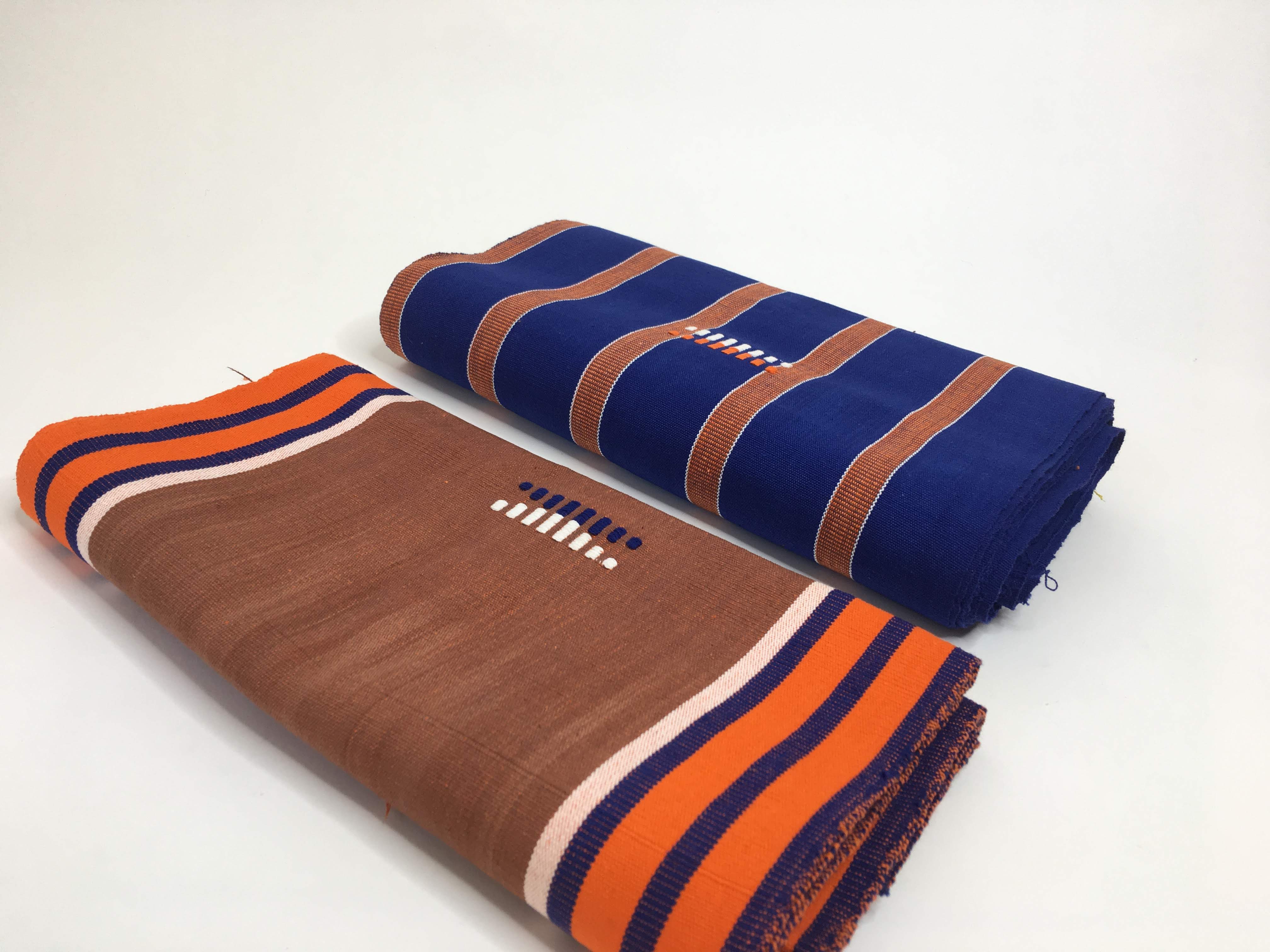 Faso Dan Fani : un tissage à la main, bande après bande. Chaque mètre demande du temps, de la précision et un assemblage soigné pour aligner les rayures. Notre prix reflète la qualité du coton, le savoir-faire des artisans au Burkina Faso, les petites séries et des finitions durables — pour une pièce qui vieillit bien et se transmet.