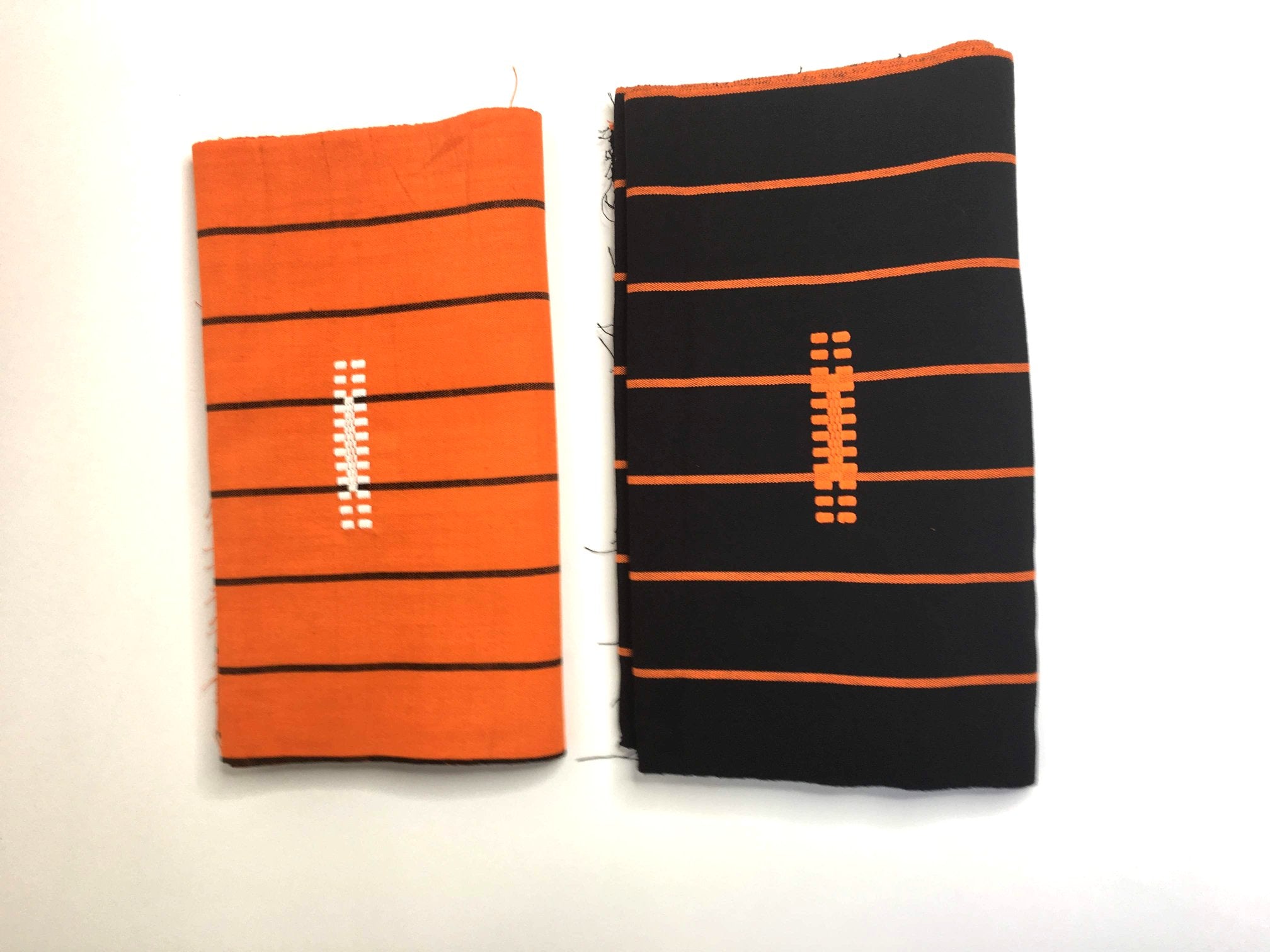 Faso Dan Fani : un tissage à la main, bande après bande. Chaque mètre demande du temps, de la précision et un assemblage soigné pour aligner les rayures. Notre prix reflète la qualité du coton, le savoir-faire des artisans au Burkina Faso, les petites séries et des finitions durables — pour une pièce qui vieillit bien et se transmet.