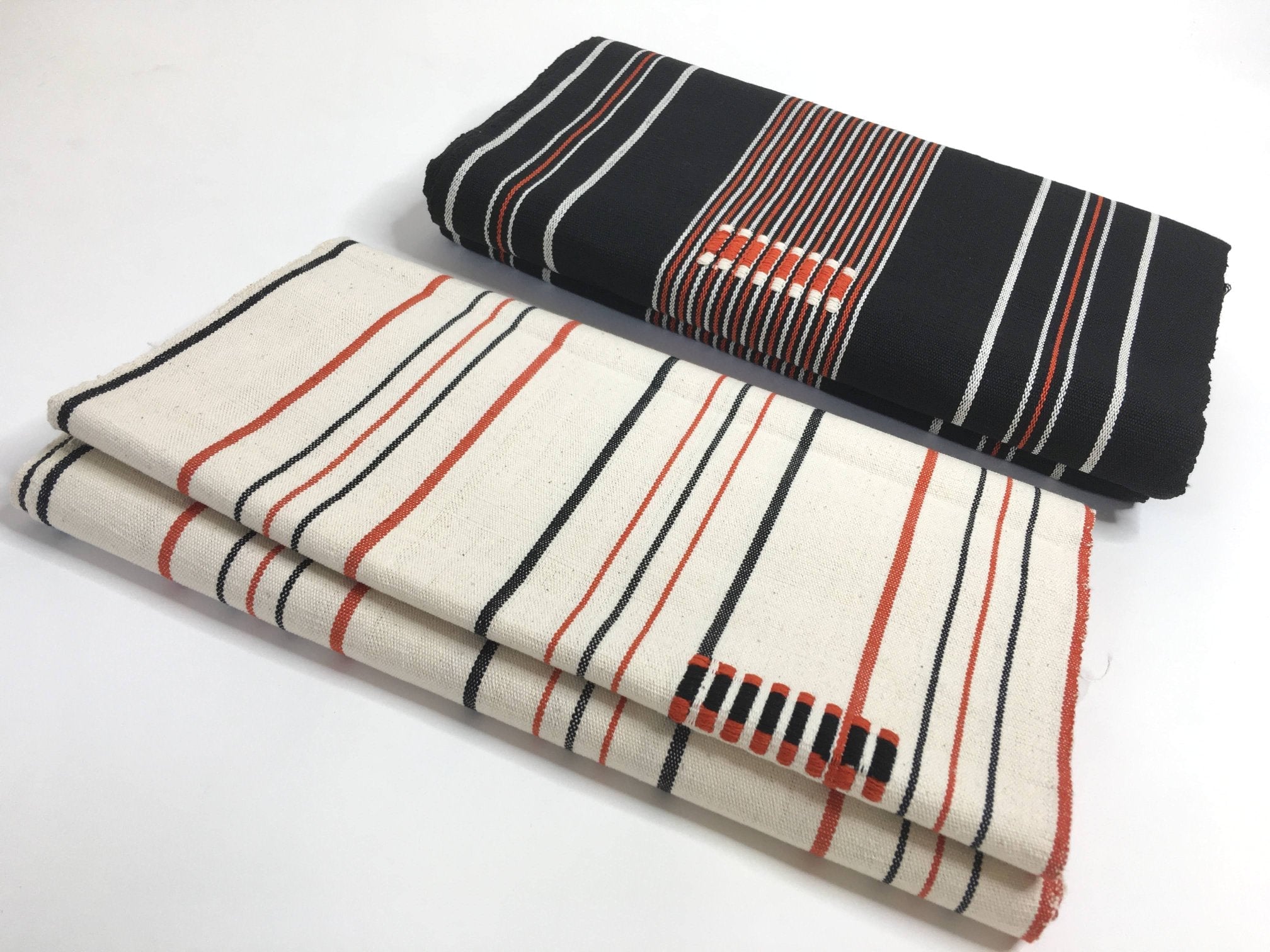 Faso Dan Fani : un tissage à la main, bande après bande. Chaque mètre demande du temps, de la précision et un assemblage soigné pour aligner les rayures. Notre prix reflète la qualité du coton, le savoir-faire des artisans au Burkina Faso, les petites séries et des finitions durables — pour une pièce qui vieillit bien et se transmet.