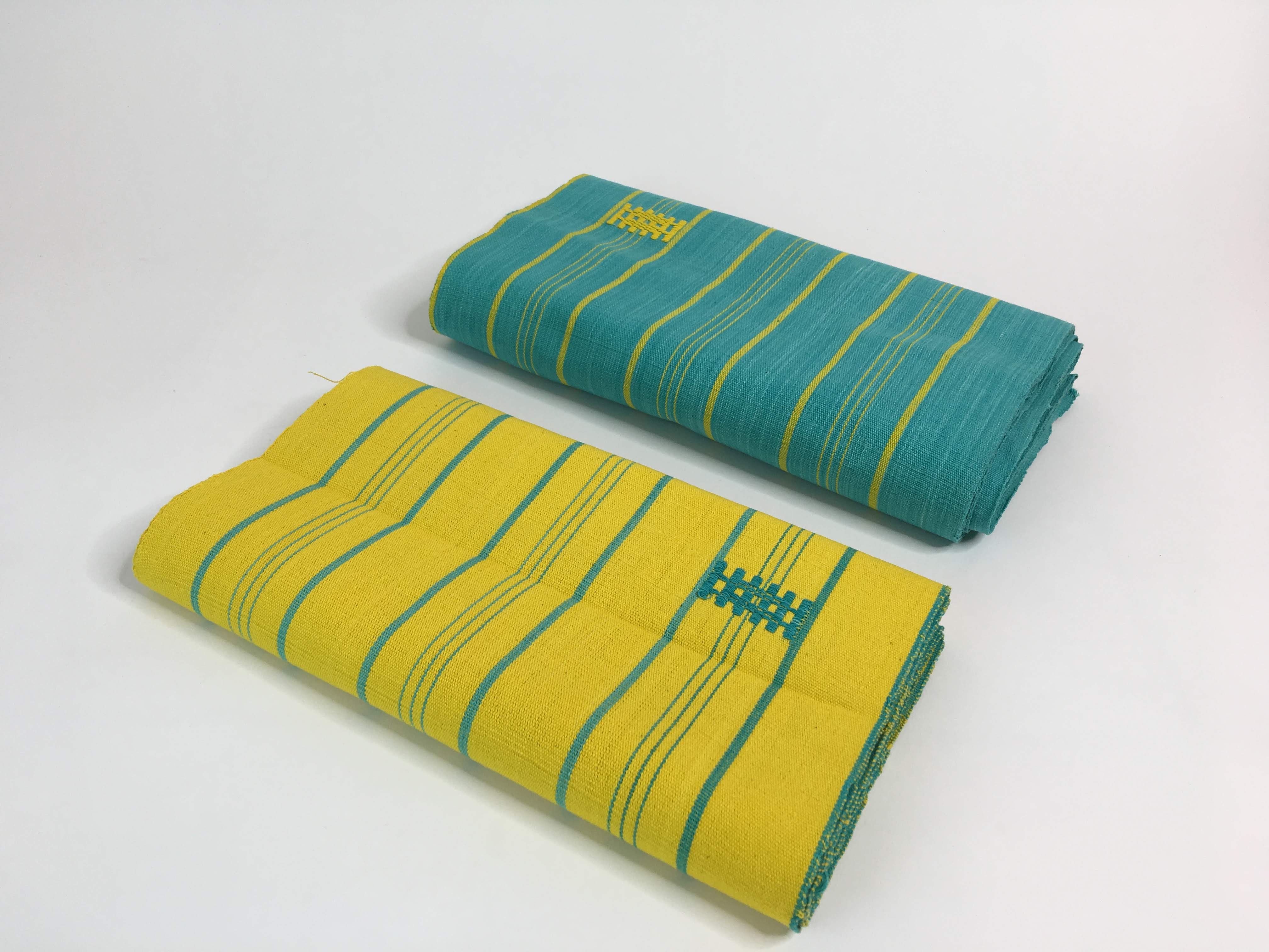Faso Dan Fani : un tissage à la main, bande après bande. Chaque mètre demande du temps, de la précision et un assemblage soigné pour aligner les rayures. Notre prix reflète la qualité du coton, le savoir-faire des artisans au Burkina Faso, les petites séries et des finitions durables — pour une pièce qui vieillit bien et se transmet.