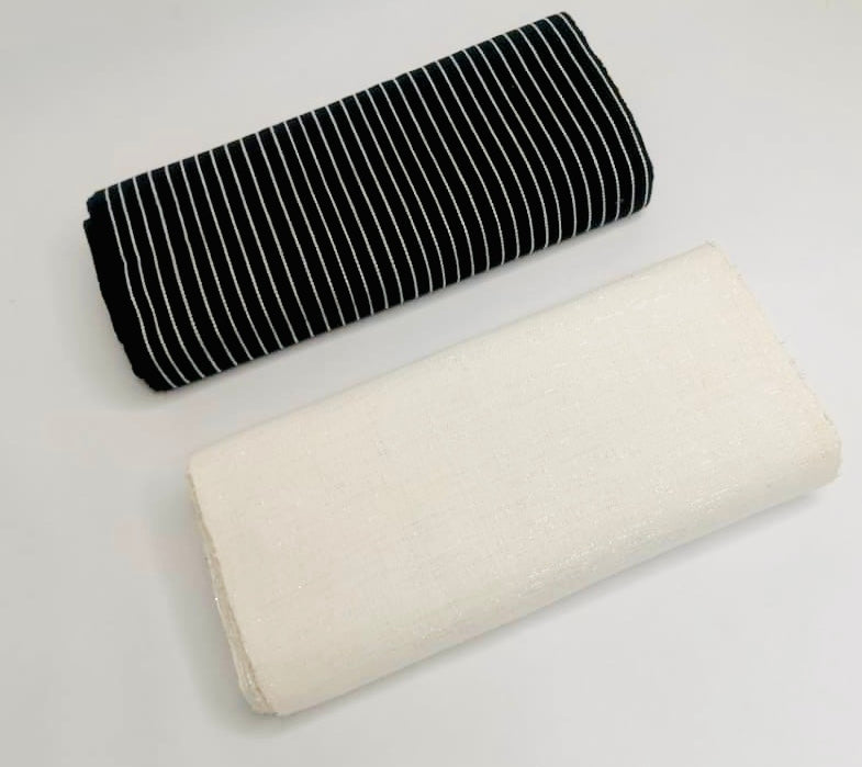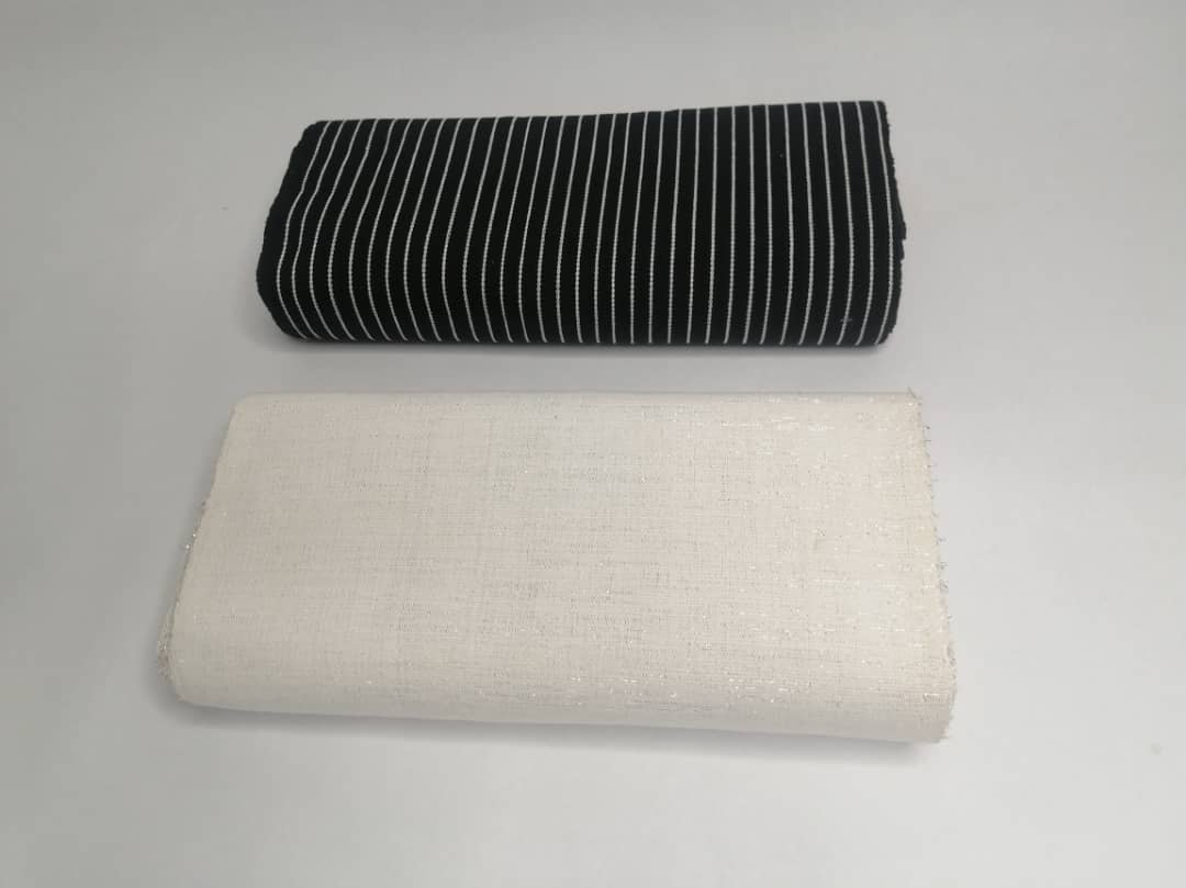 « Duo Essentiel 515 est un tissu pensé pour le quotidien raffiné. Ses rayures franches et son tissage affirmé en font une pièce polyvalente, capable de se transformer en vêtement ou en accessoire chic. »