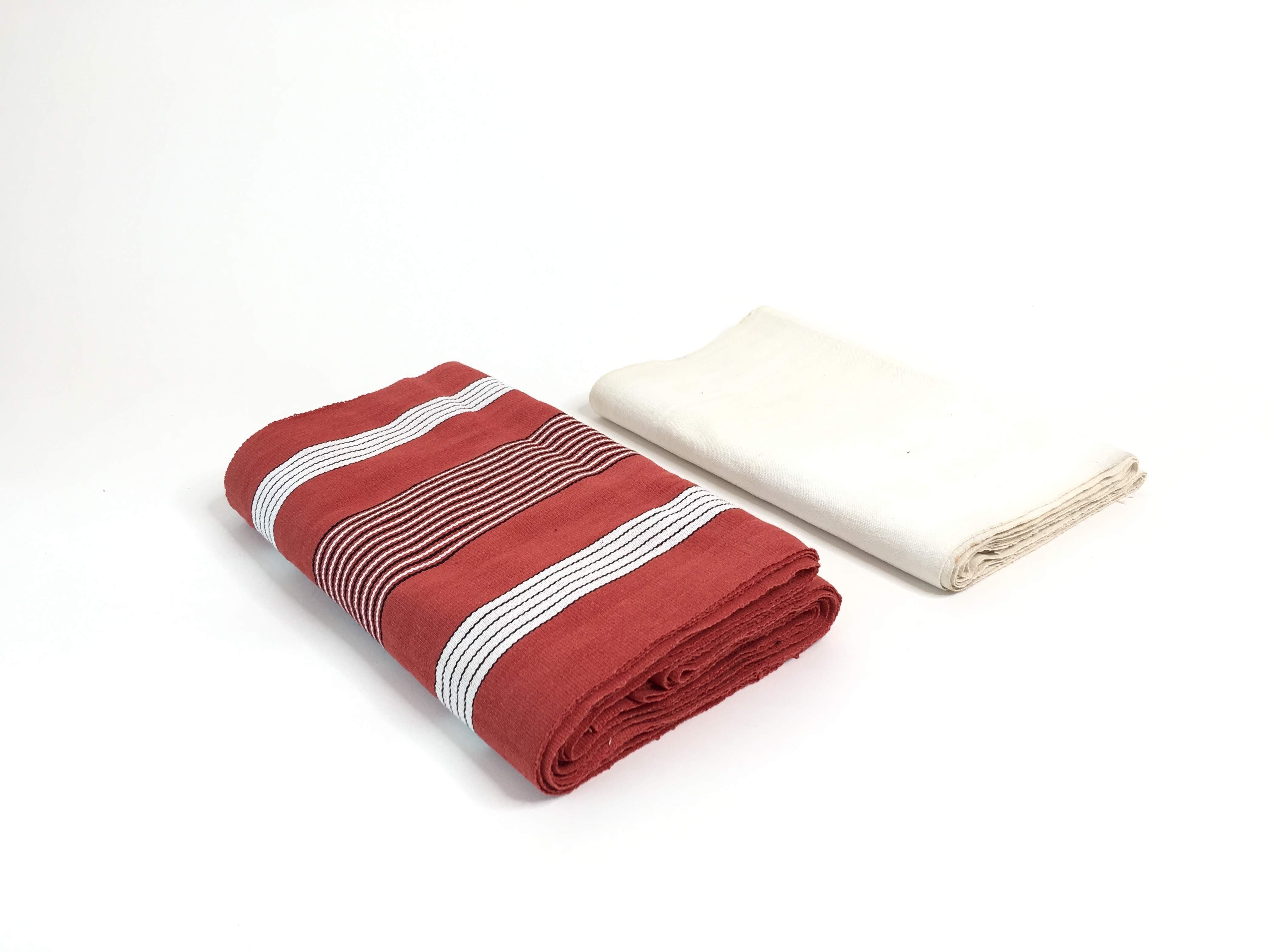 Faso Dan Fani : un tissage à la main, bande après bande. Chaque mètre demande du temps, de la précision et un assemblage soigné pour aligner les rayures. Notre prix reflète la qualité du coton, le savoir-faire des artisans au Burkina Faso, les petites séries et des finitions durables — pour une pièce qui vieillit bien et se transmet.