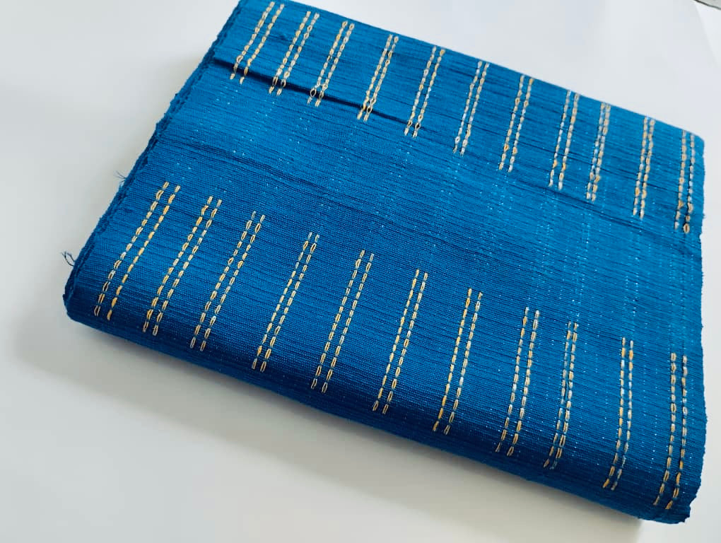 Faso Dan Fani : un tissage à la main, bande après bande. Chaque mètre demande du temps, de la précision et un assemblage soigné pour aligner les rayures. Notre prix reflète la qualité du coton, le savoir-faire des artisans au Burkina Faso, les petites séries et des finitions durables — pour une pièce qui vieillit bien et se transmet.