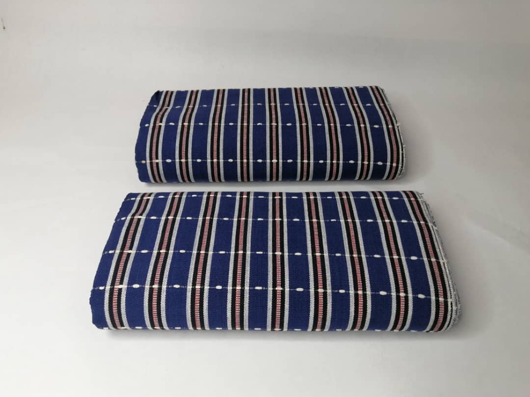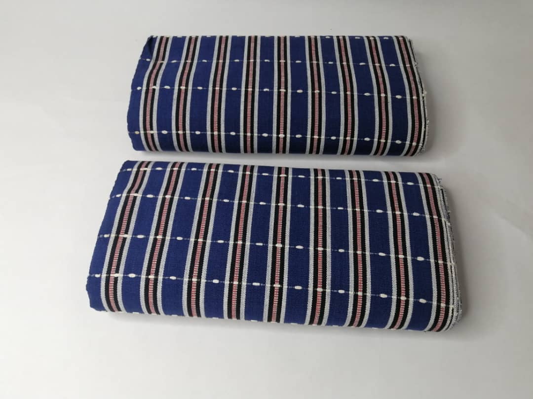 Faso Dan Fani : un tissage à la main, bande après bande. Chaque mètre demande du temps, de la précision et un assemblage soigné pour aligner les rayures. Notre prix reflète la qualité du coton, le savoir-faire des artisans au Burkina Faso, les petites séries et des finitions durables — pour une pièce qui vieillit bien et se transmet.