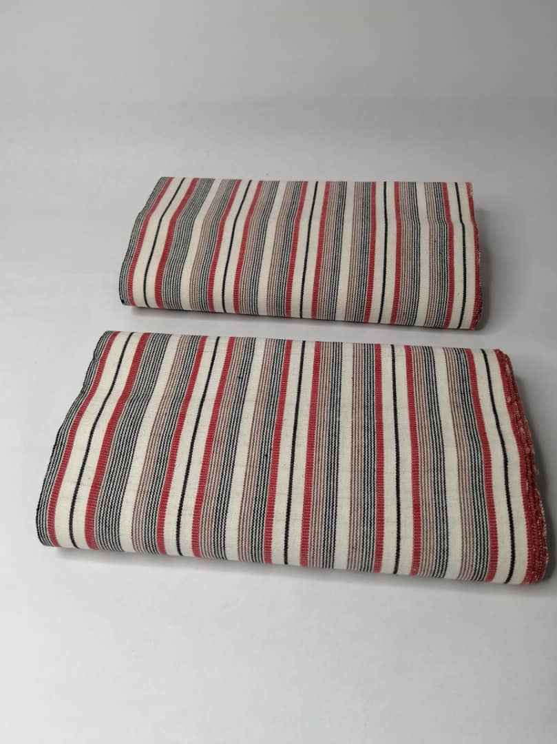 Faso Dan Fani : un tissage à la main, bande après bande. Chaque mètre demande du temps, de la précision et un assemblage soigné pour aligner les rayures. Notre prix reflète la qualité du coton, le savoir-faire des artisans au Burkina Faso, les petites séries et des finitions durables — pour une pièce qui vieillit bien et se transmet.
