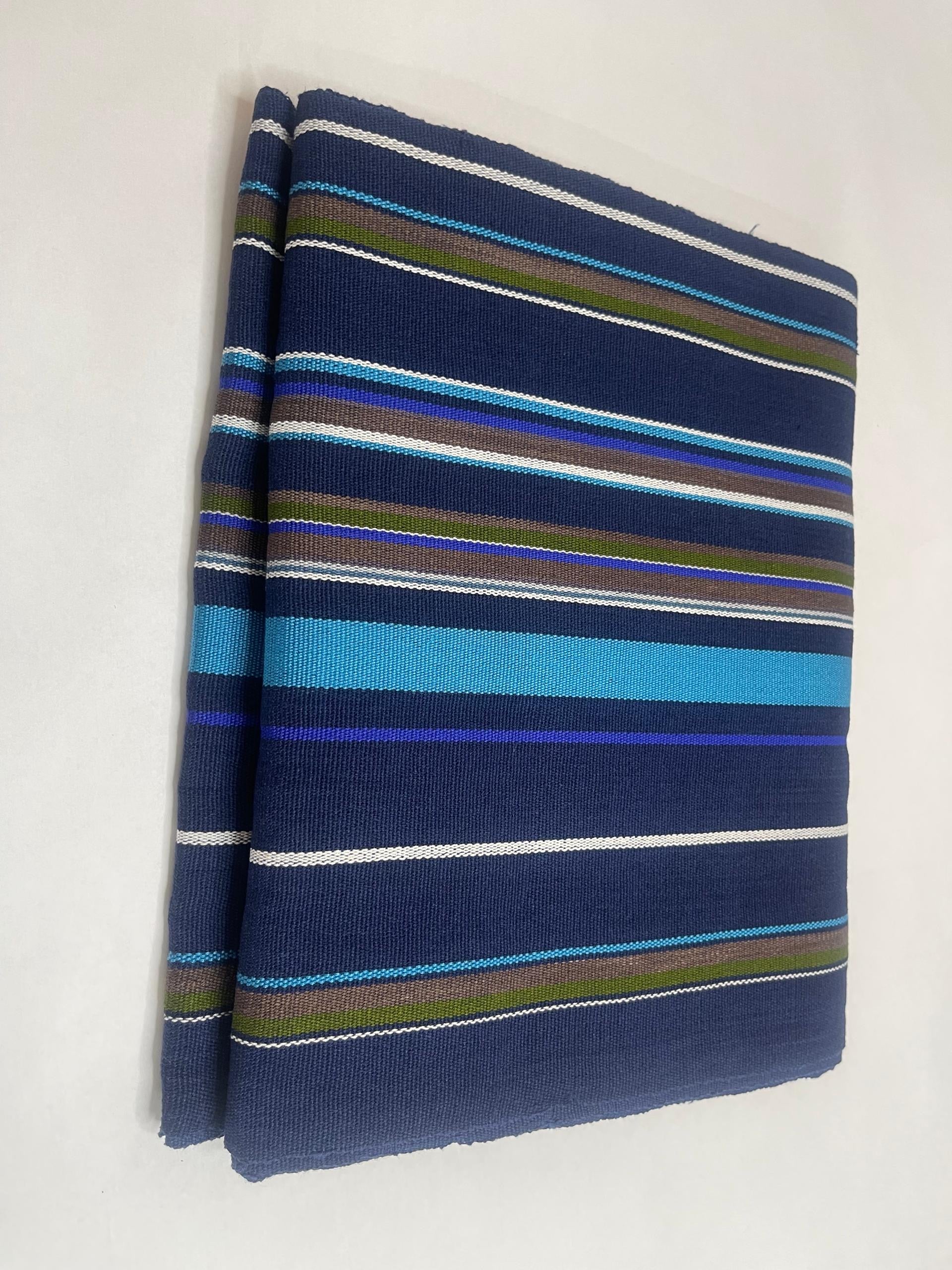 Faso Dan Fani : un tissage à la main, bande après bande. Chaque mètre demande du temps, de la précision et un assemblage soigné pour aligner les rayures. Notre prix reflète la qualité du coton, le savoir-faire des artisans au Burkina Faso, les petites séries et des finitions durables — pour une pièce qui vieillit bien et se transmet.