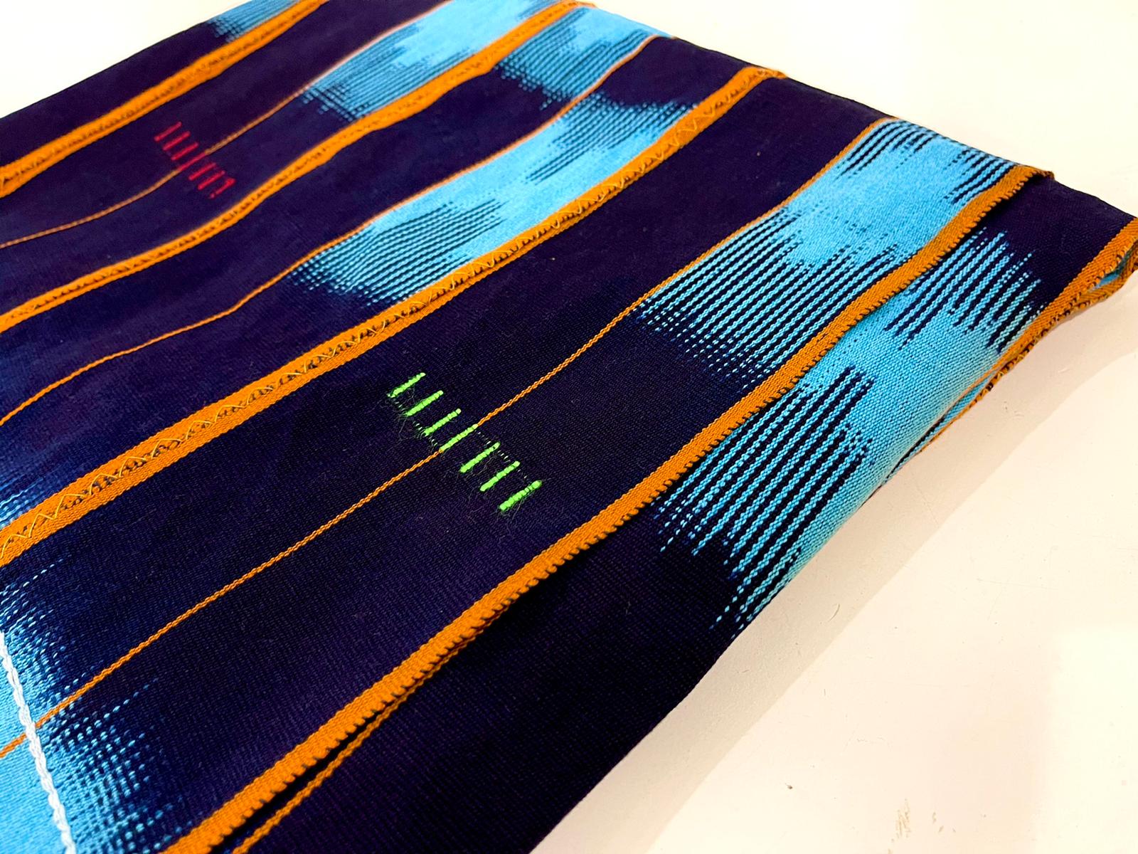 « Héritage précieux des Baoulés de Côte d’Ivoire, Baoulé 418 est un tissu qui respire la noblesse. Ses couleurs profondes et ses contrastes mesurés traduisent une élégance discrète, faite pour traverser le temps avec dignité. »