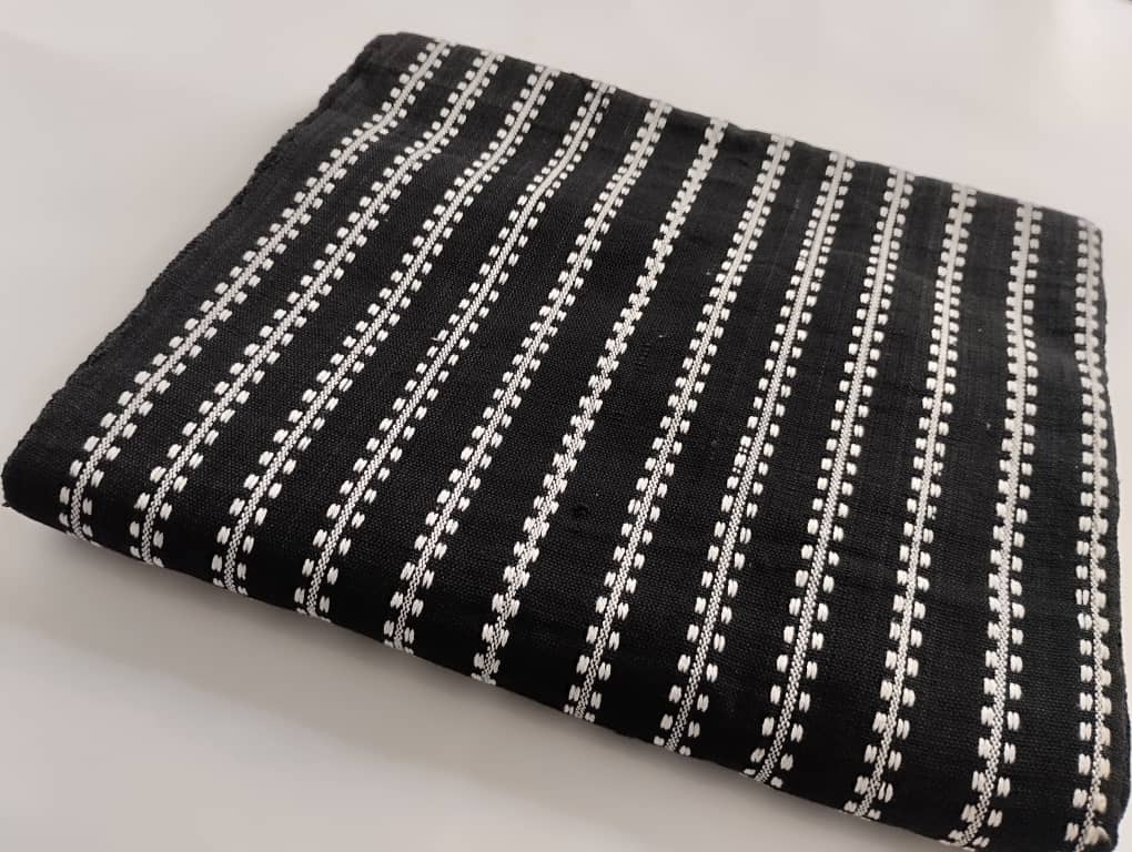 Faso Dan Fani : un tissage à la main, bande après bande. Chaque mètre demande du temps, de la précision et un assemblage soigné pour aligner les rayures. Notre prix reflète la qualité du coton, le savoir-faire des artisans au Burkina Faso, les petites séries et des finitions durables — pour une pièce qui vieillit bien et se transmet.