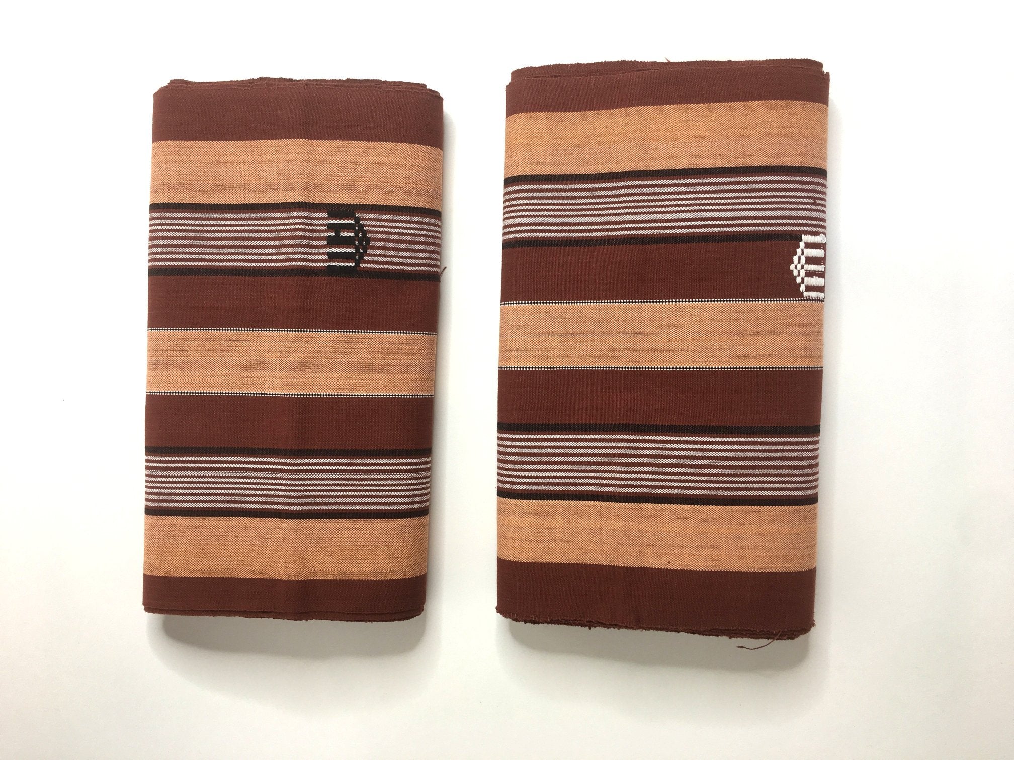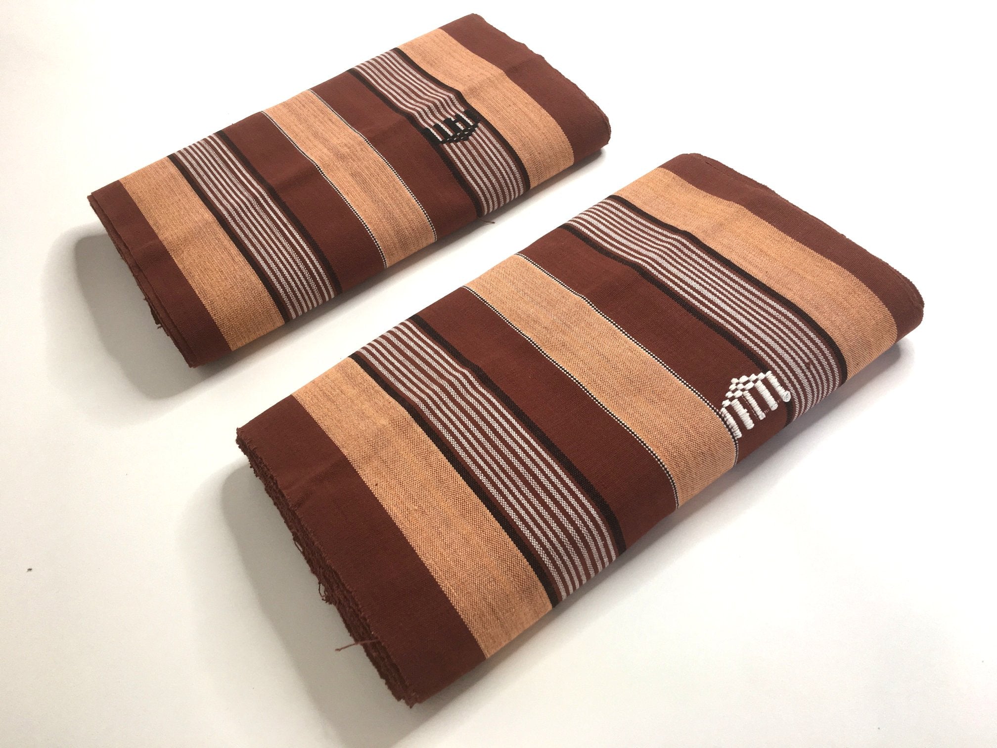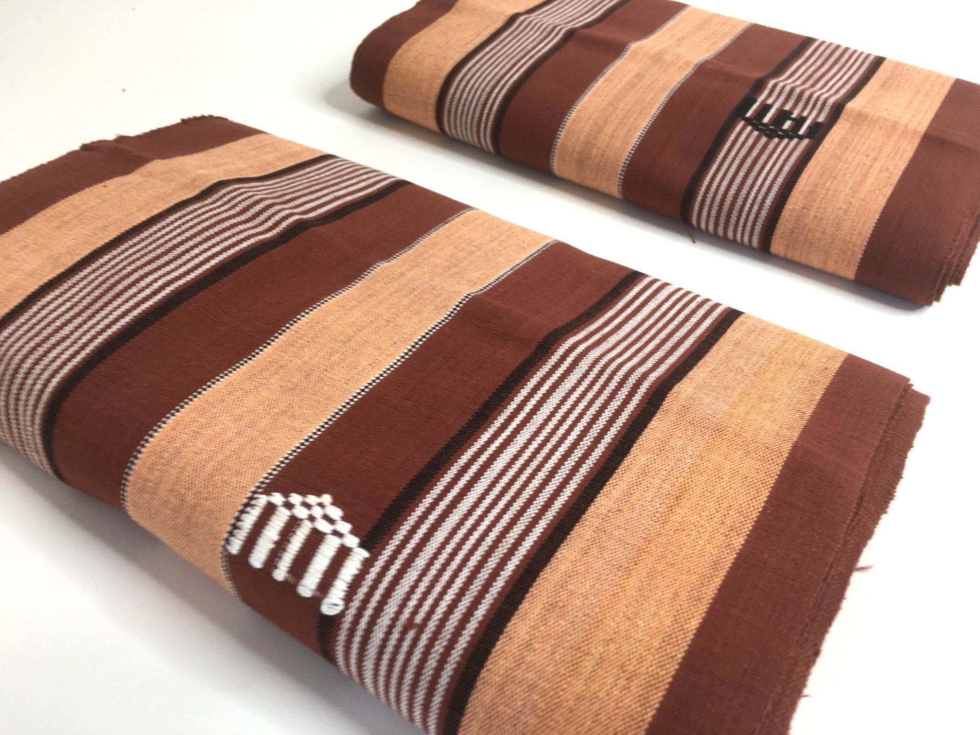 Faso Dan Fani : un tissage à la main, bande après bande. Chaque mètre demande du temps, de la précision et un assemblage soigné pour aligner les rayures. Notre prix reflète la qualité du coton, le savoir-faire des artisans au Burkina Faso, les petites séries et des finitions durables — pour une pièce qui vieillit bien et se transmet.
